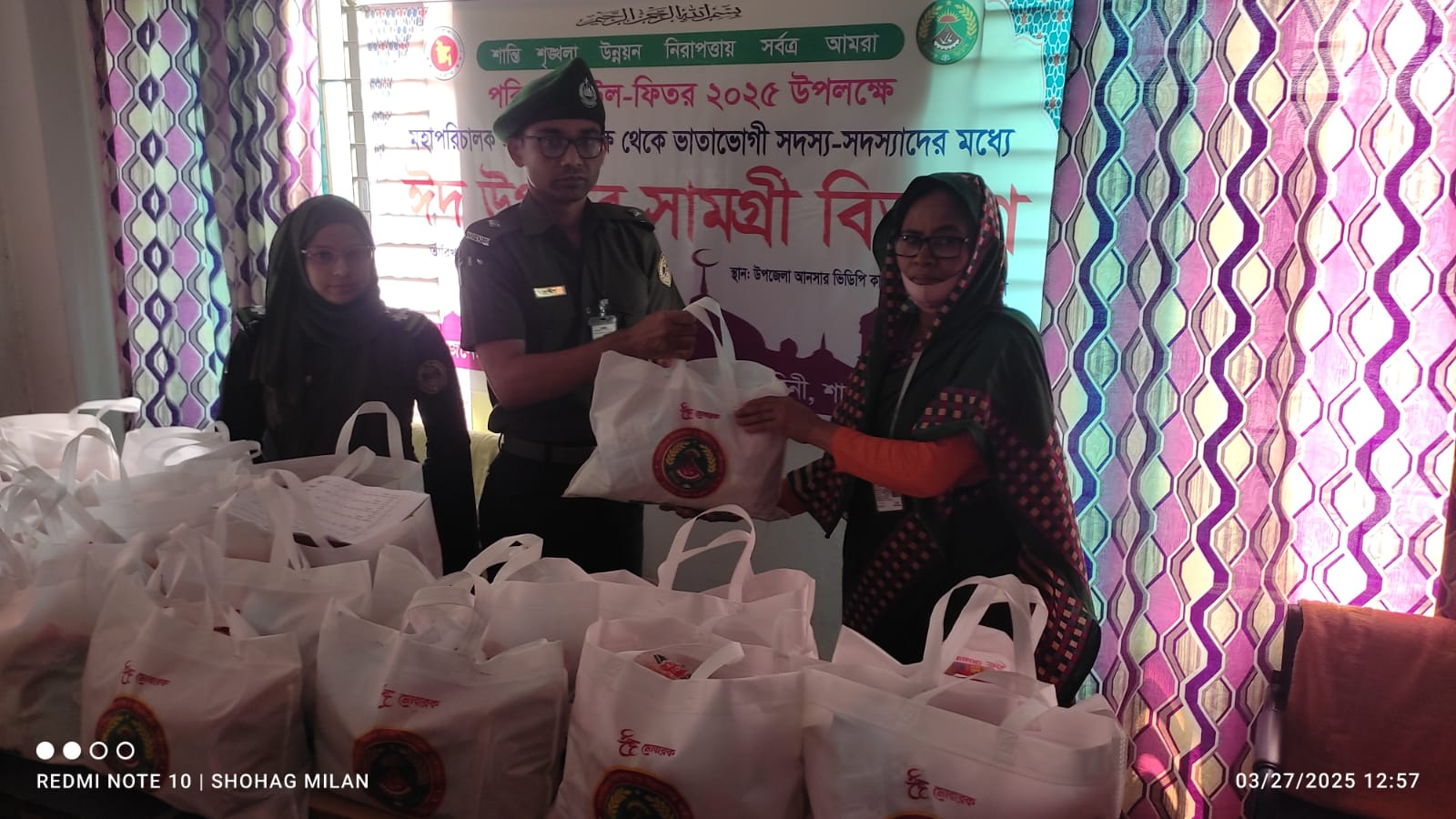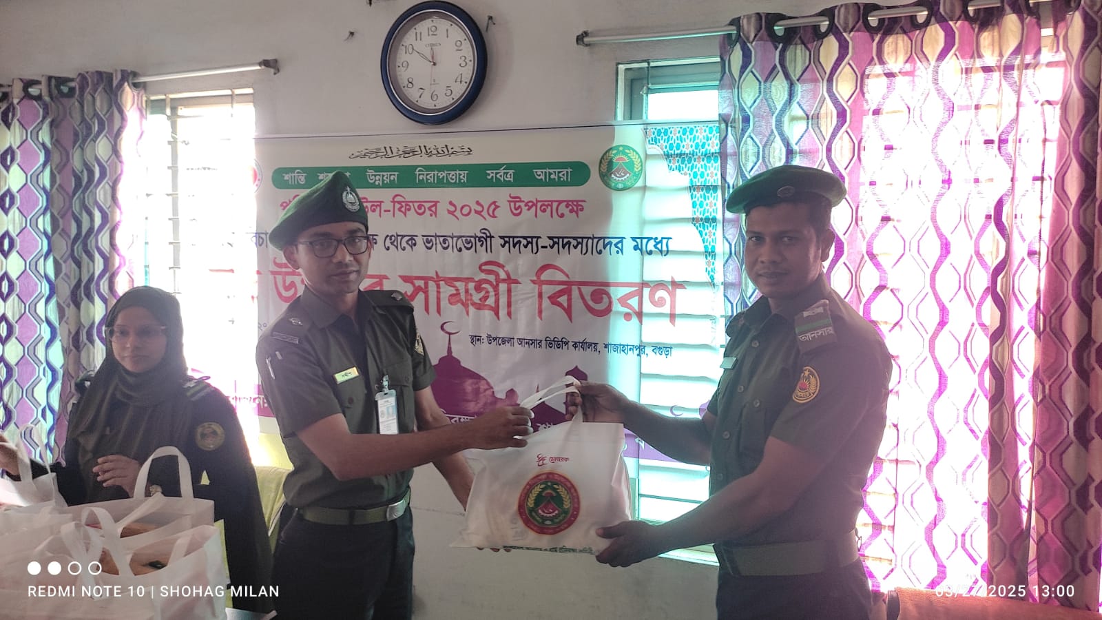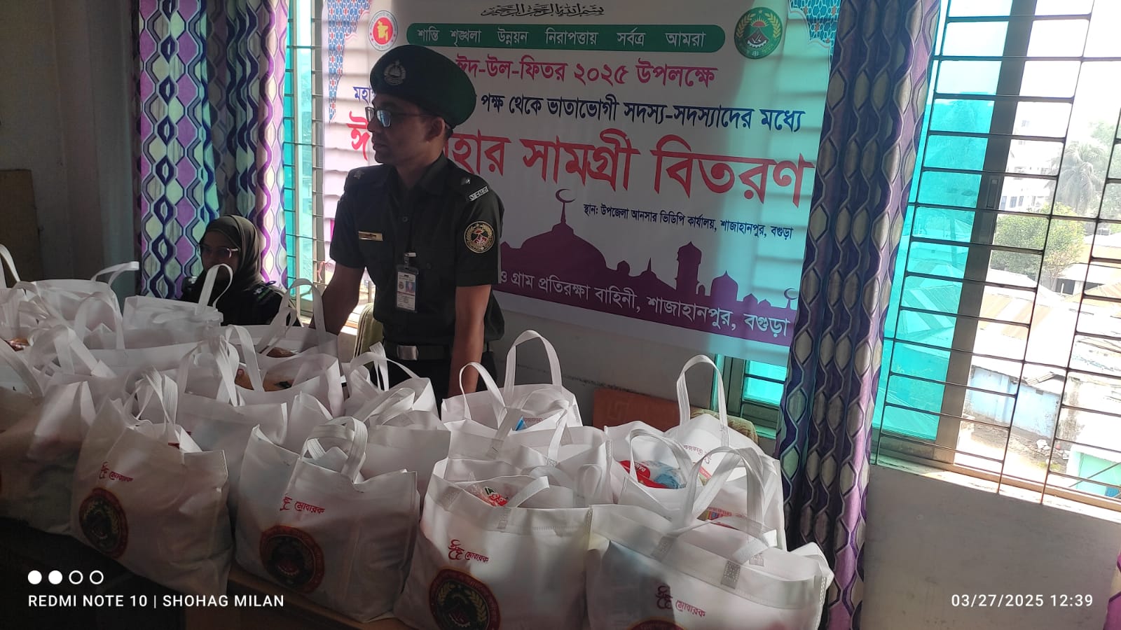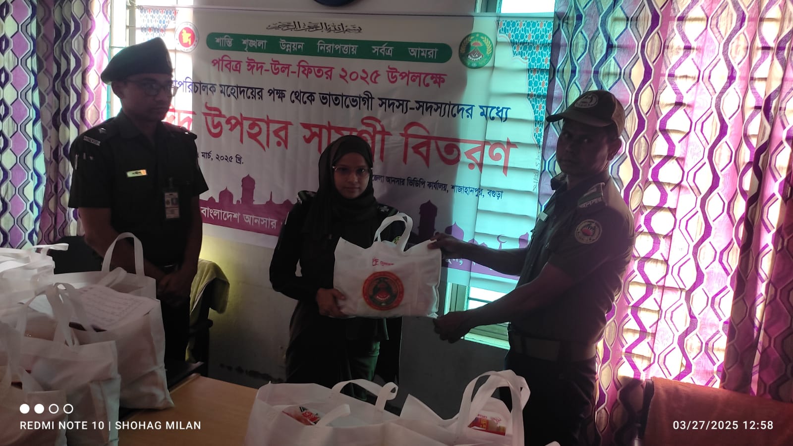 পবিত্র ঈদ-উল-ফিতর ২০২৫ উপলক্ষ্যে মহাপরিচালক ,আনসার ও ভিডিপি মহোদয়ের পক্ষ হতে উপজেলা আনসার ও ভিডিপি কার্যালয় , শাজাহানপুর , বগুড়া এর অধীন সকল ভাতাভোগী সদস্যদের মাঝে গত২৭/০৩/২০২৫ ইং তারিখ ঈদ উপহার সামগ্রী বিতরণ করা হয় ।