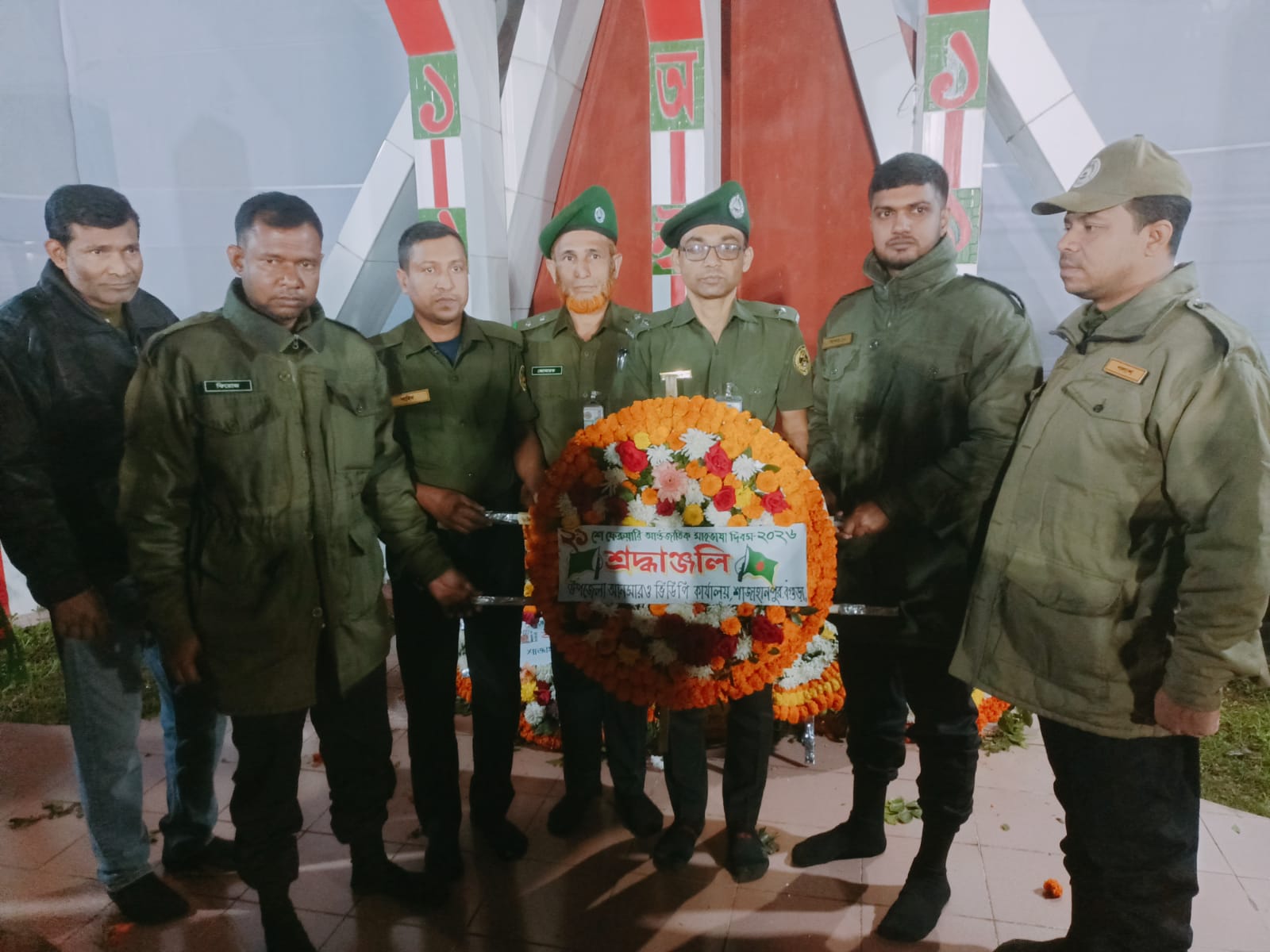 উৎসাহ, উদ্দীপনা , শ্রদ্ধা ও ভাবগাম্ভীর্য এর মধ্য দিয়ে উপজেলা আনসার ও ভিডিপি কার্যালয় ,শাজাহানপুর, বগুড়া এর উদ্যোগে মহান শহীদ দিবস ও আন্তর্জাতিক মাতৃভাষা দিবস -২০২৬ পালন করা হয় । উপজেলা পরিষদ প্রাঙ্গণে স্থাপিত শহীদ মিনারে পুস্পস্তবক অর্পণের মাধ্যমে শহীদদের প্রতি বিনম্র শ্রদ্ধা জানানো হয় ।