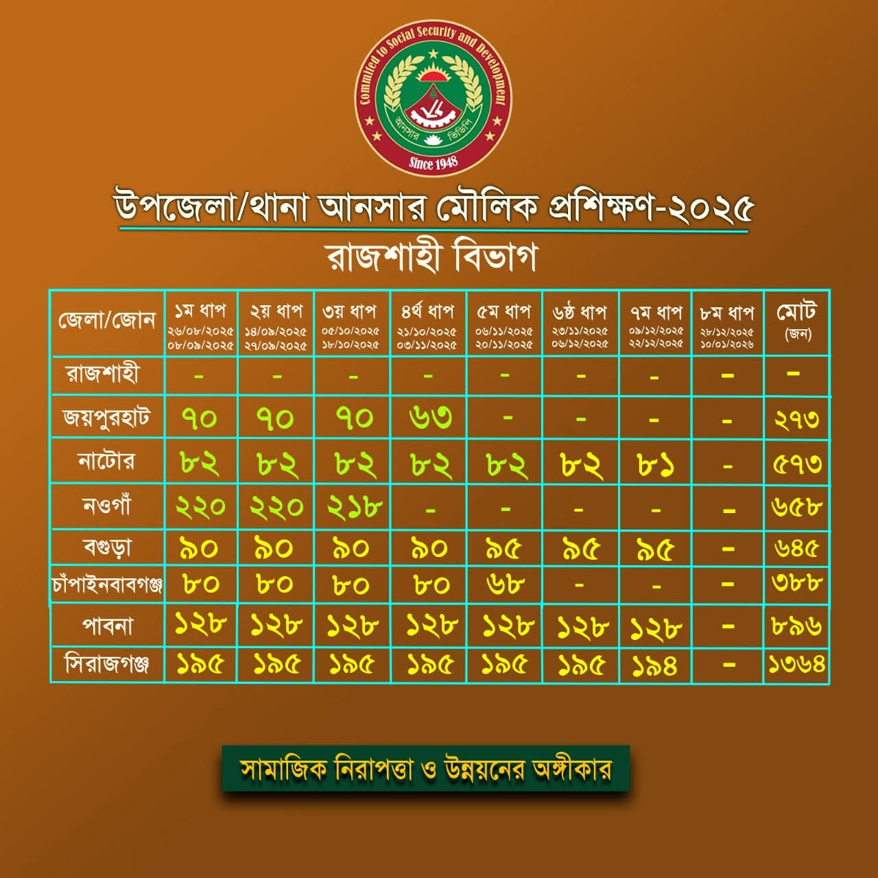 উপজেলা / থানা আনসার মৌলিক প্রশিক্ষণ -২০২৫